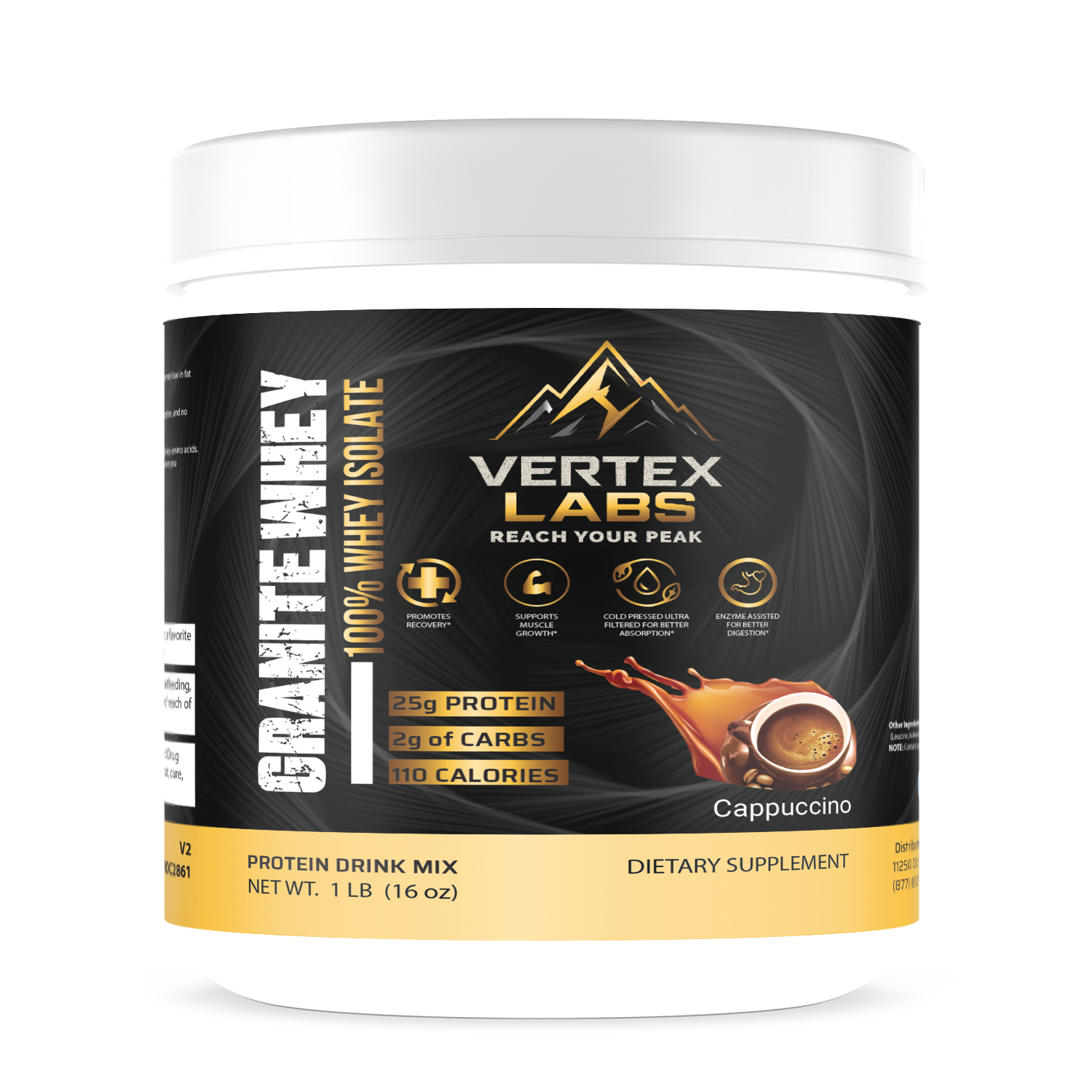 When your body demands nothing but the best, Granite Whey 100% Whey Isolate by Vertex Labs delivers. Formulated for athletes who train hard and a speedy recovery is essential, this ultra-clean formula packs 25g of fast-digesting whey isolate protein into every serving, without excess carbs, fats, or sugars.