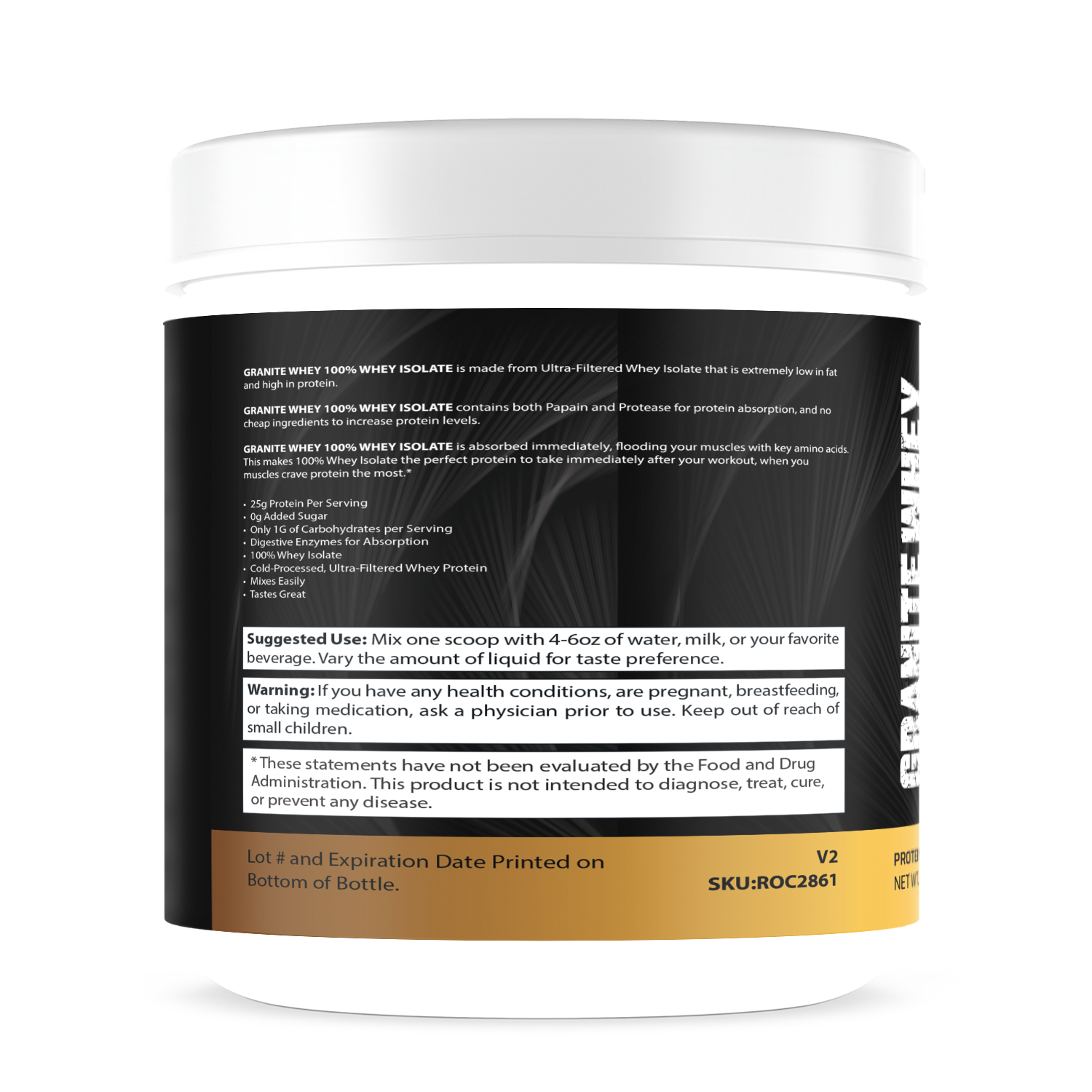 Every serving of Granite Whey 100% Whey Isolate delivers: