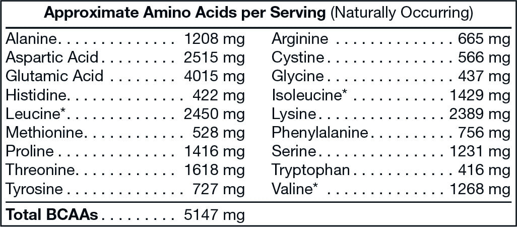 • Total BCAAs (5147mg): Includes a full spectrum amino acid blend consisting of 18 Amino Acids starting with Leucine (2450mg), Isoleucine (1429mg), and Valine (1268mg) to trigger muscle growth and recovery.