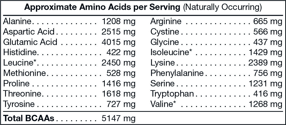 • Total BCAAs (5147mg): Includes a full spectrum amino acid blend consisting of 18 Amino Acids starting with Leucine (2450mg), Isoleucine (1429mg), and Valine (1268mg) to trigger muscle growth and recovery.