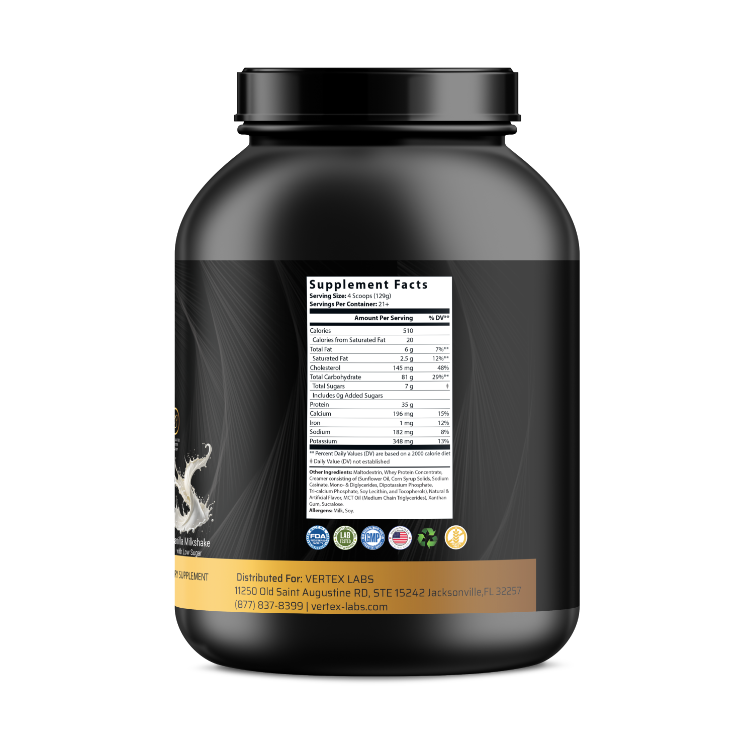 Serious size demands serious nutrition. Denali Protein Premium Mass Gainer by Vertex Labs delivers the clean, high-powered formula your body needs to build real mass.