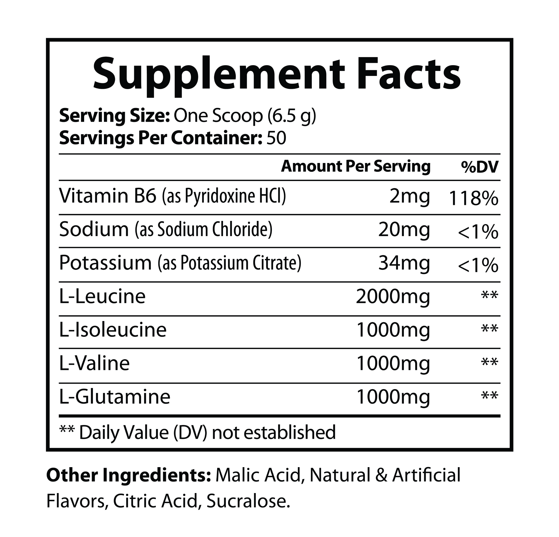 • L-Glutamine (1000mg): Promotes recovery, immune health, and reduced soreness.