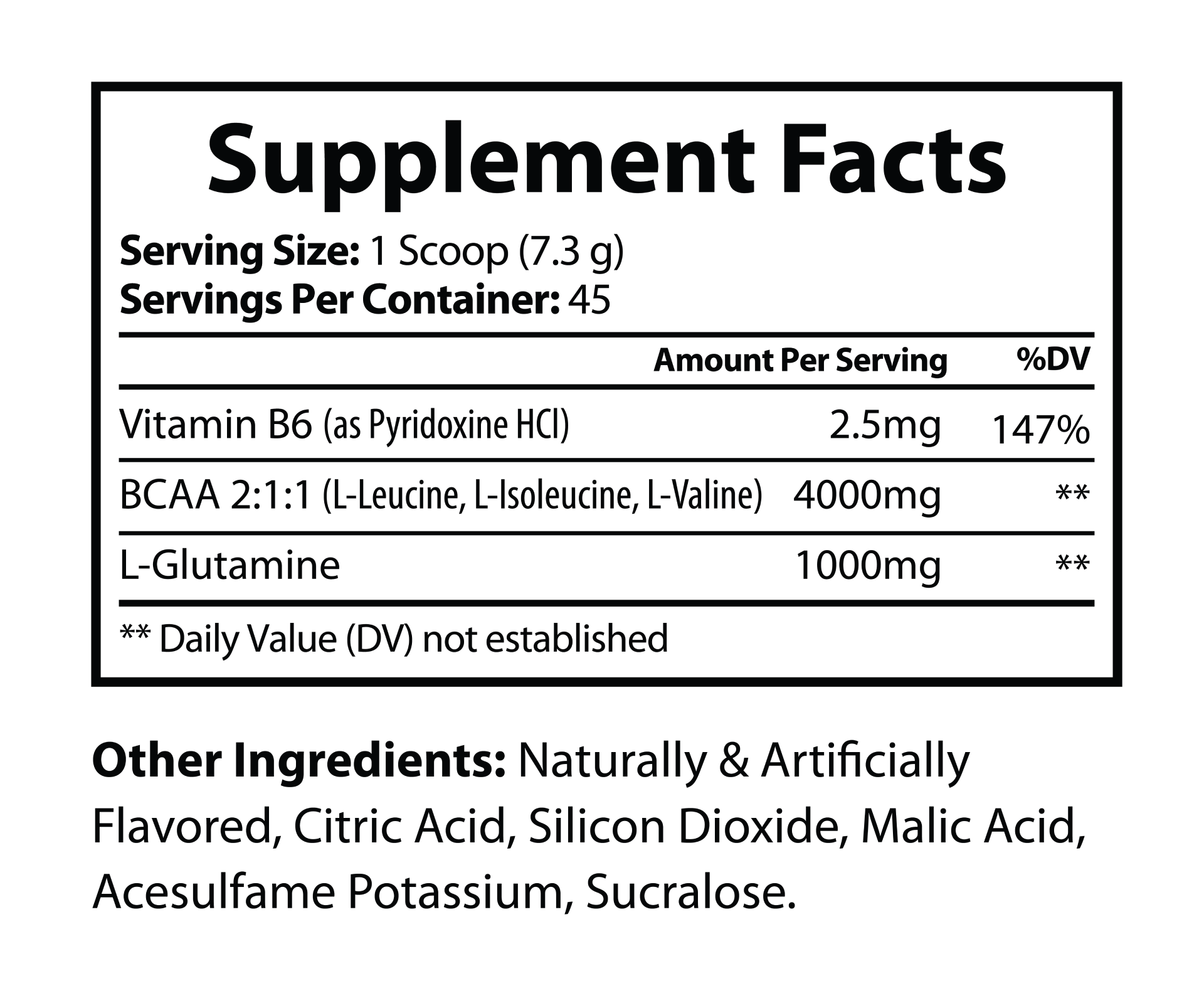 • L-Glutamine (1000mg): Accelerates muscle repair and promotes immune and gut health post-exercise.