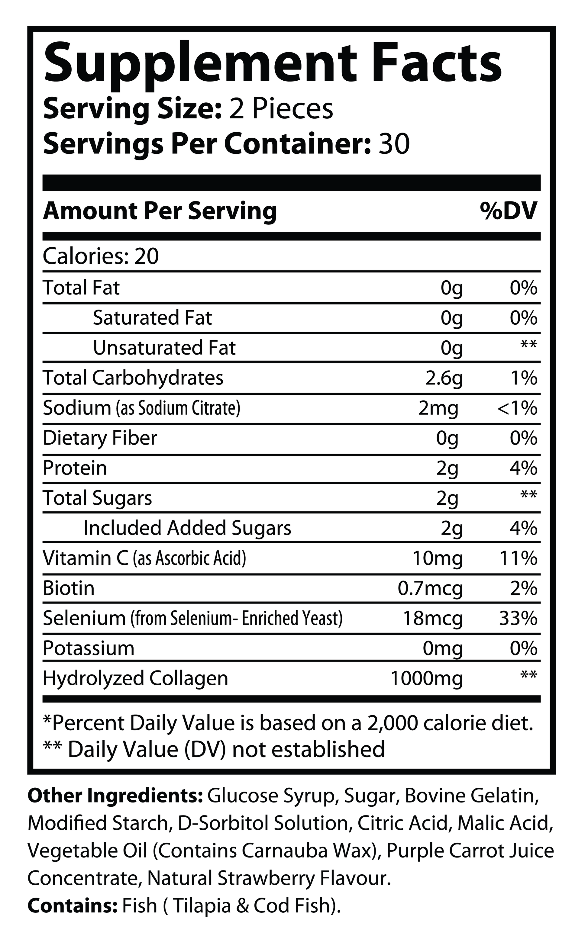 Each serving of Collagen Hydrolyzed 1000mg Gummies includes: