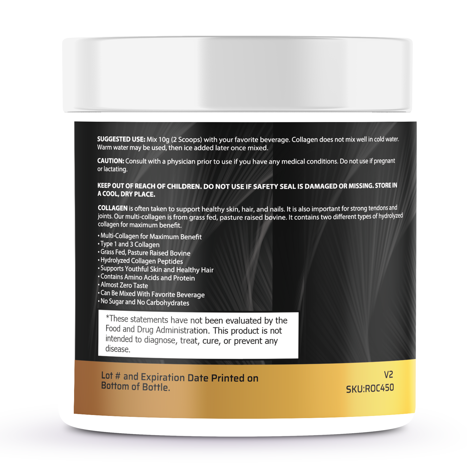 SUGGESTED USE: Mix 10g (2 Scoops) with your favorite beverage. Collagen does not mix well in cold water. Warm water may be used, then ice added later once mixed.