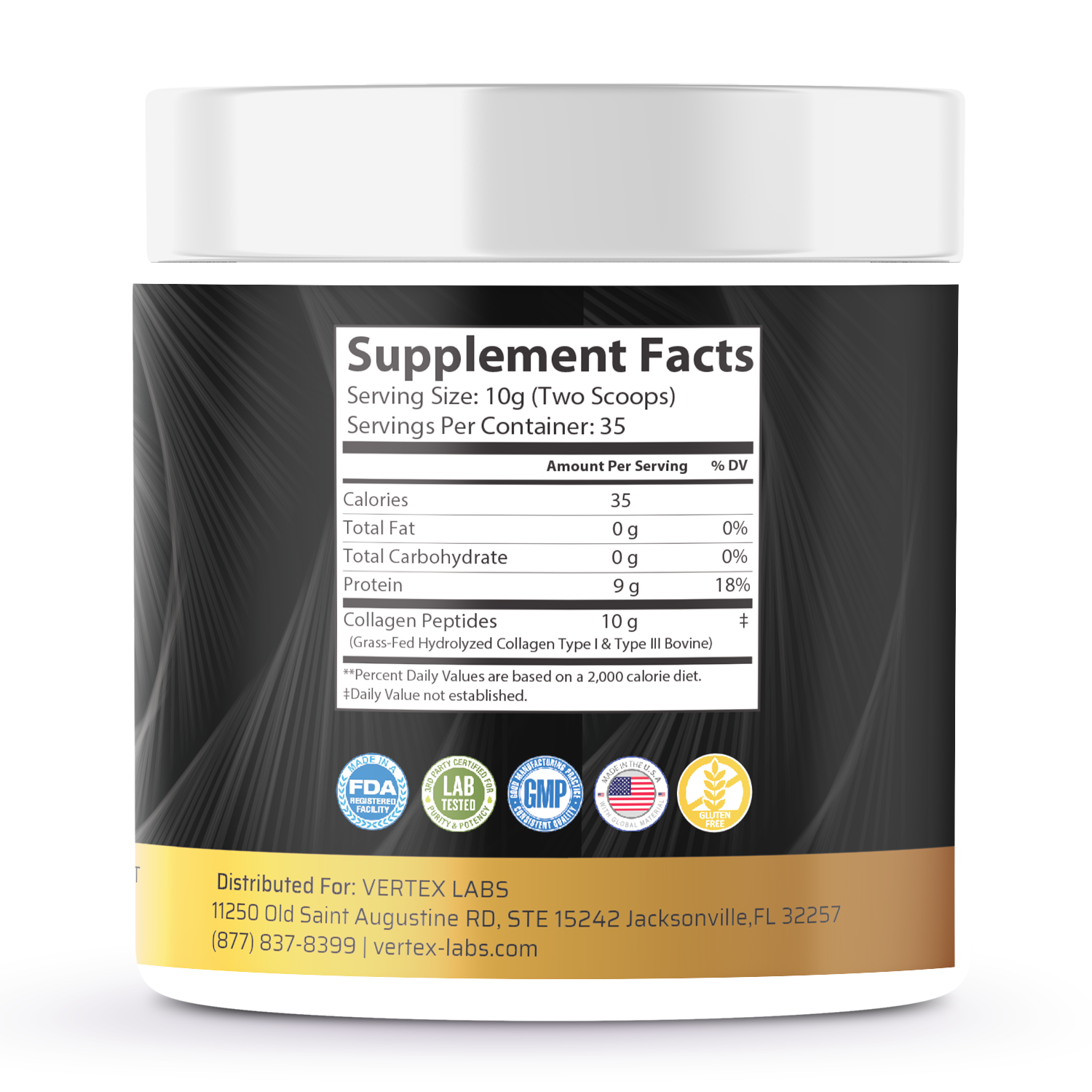 From skin elasticity to joint strength and hair vitality, collagen is the body’s structural backbone. Collagen Type 1 & 3 Grass Fed Hydrolyzed by Vertex Labs delivers a pure, unflavored protein boost sourced from pasture-raised bovine, designed to dissolve seamlessly into your