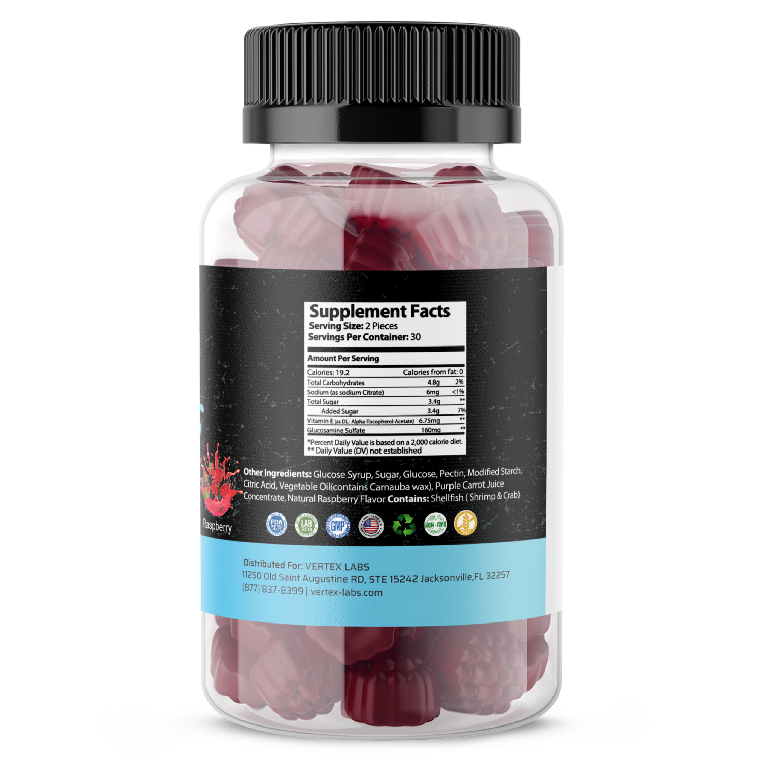 Each raspberry-flavored gummy combines joint-supporting ingredients in a delicious and convenient form, no pills, no hassle.