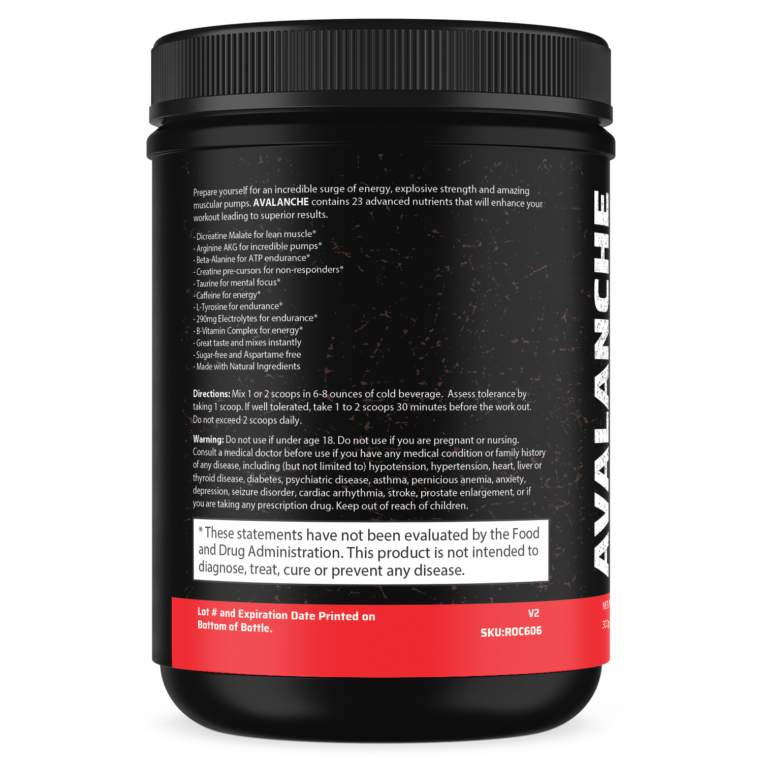 Blended with a matrix of vitamins, electrolytes, and performance compounds, Avalanche is your go-to for clean, sustained intensity from warm-up to final rep.