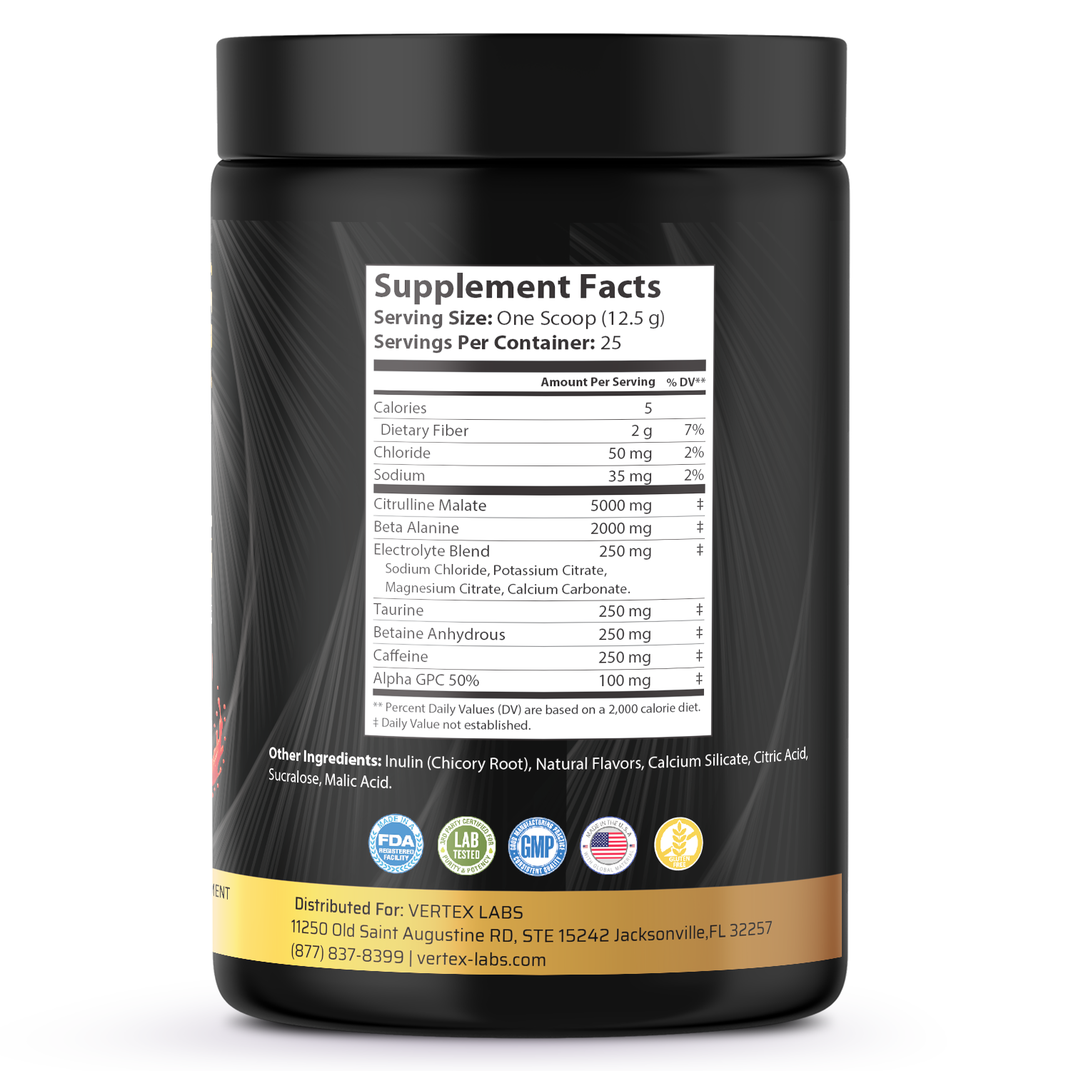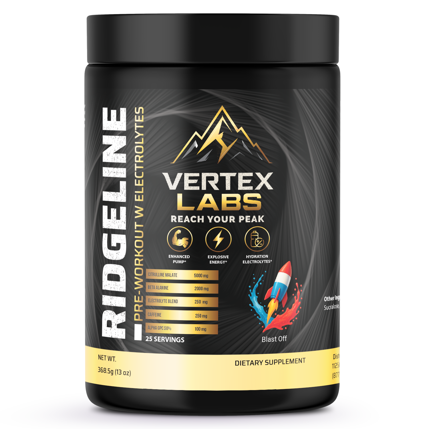 Every rep, every stride, every drop of sweat brings you one step closer to reaching your peak and Ridgeline by Vertex Labs is here to power that climb. This high-performance pre-workout was meticulously formulated to awaken your competitive spirit, sharpen your focus, and ignite your inner inferno.