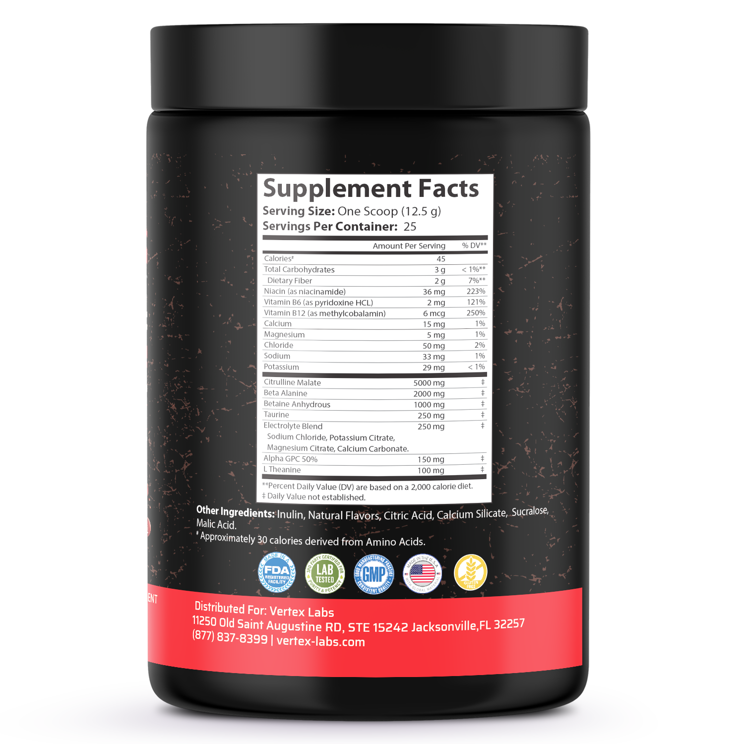 • Alpha GPC 50% (150mg): Improves mental clarity and sharpens the mind-muscle connection.