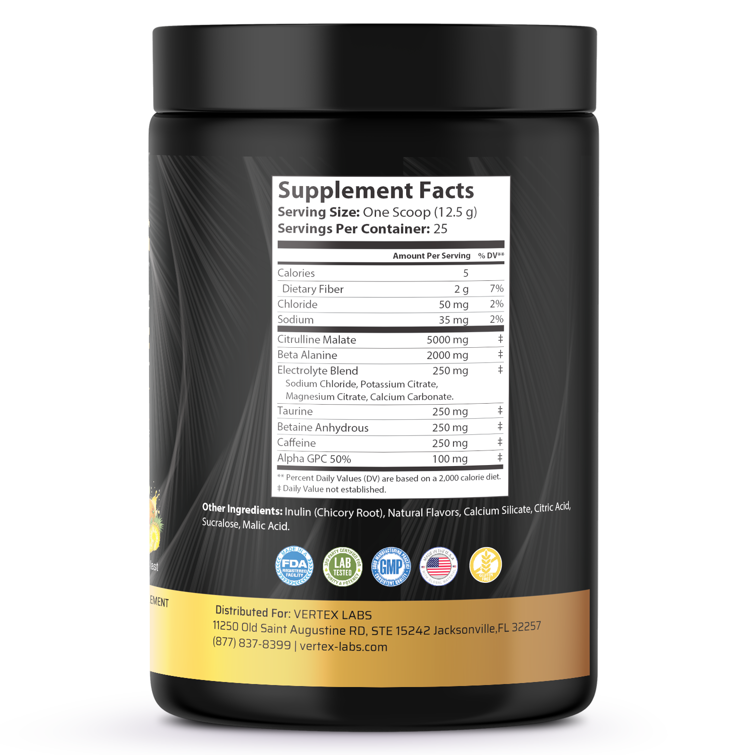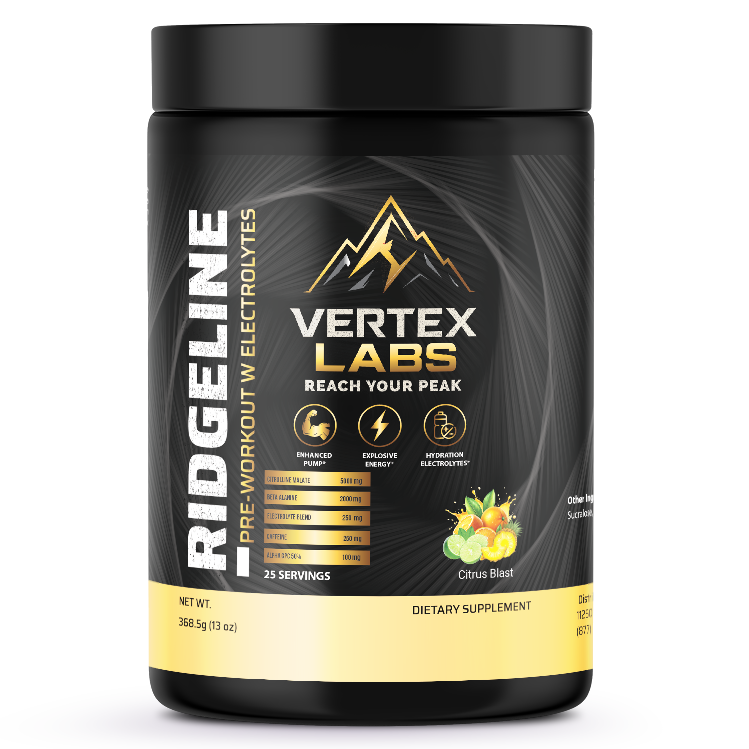 Every rep, every stride, every drop of sweat brings you one step closer to reaching your peak and Ridgeline by Vertex Labs is here to power that climb. This high-performance pre-workout was meticulously formulated to awaken your competitive spirit, sharpen your focus, and ignite your inner inferno.