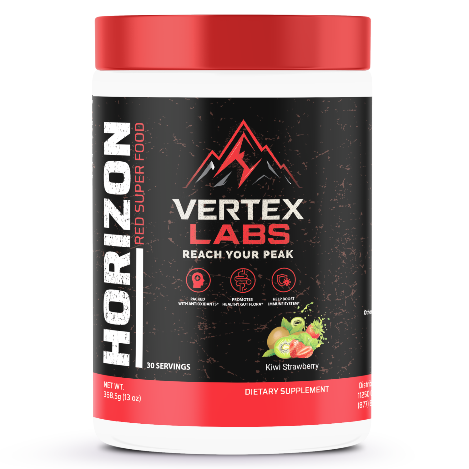 nutrient-rich fruits. Horizon Red Superfood – Kiwi Strawberry by Vertex Labs delivers a delicious, antioxidant-packed blend of over 20 red fruits, berries, and superfoods designed to fight inflammation, support immune health, and promote radiant energy from within. Crafted for daily vitality and smooth digestion, this formula is perfect for anyone looking to add a bold superfruit boost to their wellness routine.